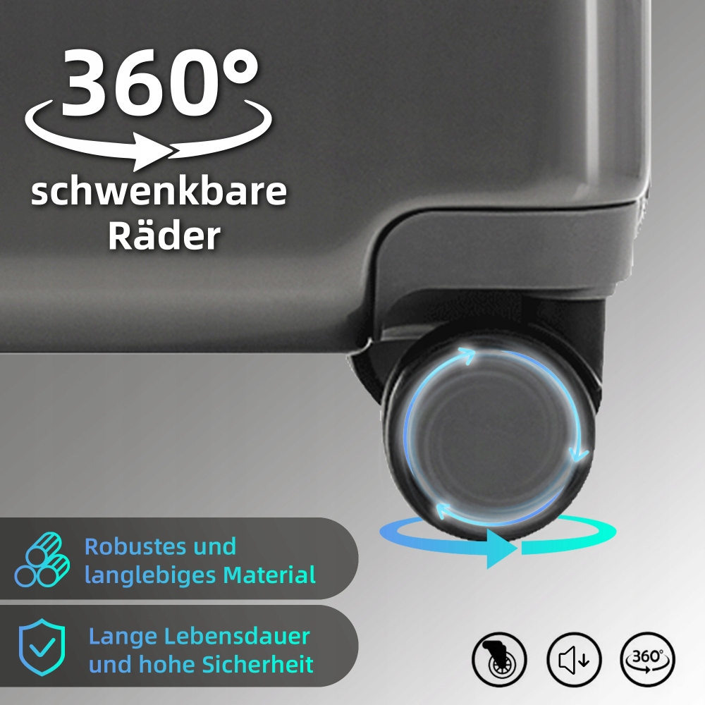 3. Подвійні поворотні коліщатка на 360°: кожен футляр оснащений подвійними гнучкими коліщатками для легкого та тихого переміщення по різноманітних поверхнях. 4. Замок безпеки, затверджений TSA: ця валіза оснащена замком TSA, який забезпечує оптимальний захист ваших цінностей і полегшує міжнародні перевірки безпеки.