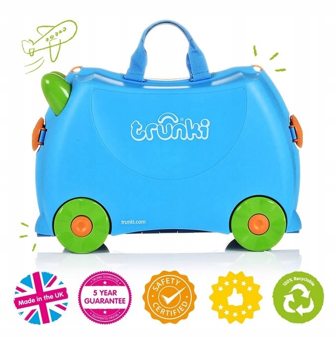 валіза Trunks легка, безпечна і довговічна. Крім того, він дуже просторий (18 літрів), що дозволяє вашій дитині брати іграшки, ігри, книги та додатковий одяг з ним. Він має ремінь для перенесення на плече або тягнення. Річки валізи використовуються для приклеювання.