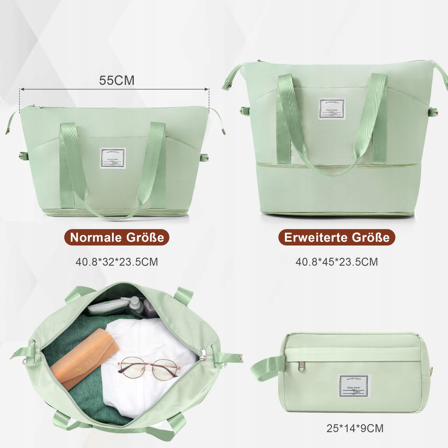 Дорожня сумка вихідного дня, що розширюється - Виготовлена з поліестерової тканини, злегка водонепроникна, з багатьма відділеннями.