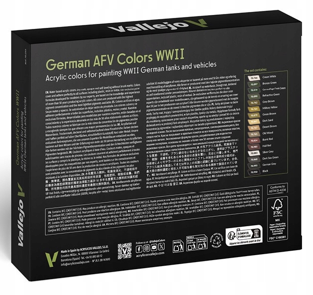 Просматривая «Vallejo 70255 AFV Color Series 16 farb - German AFV Colors WWII», вы можете быть уверены, что данный товар из каталога «[rubrica_name]» будет доставлен из Польши и проверен на целостность. В цене товара, указанной на сайте, учтена доставка из Польши. Внимание!!! Товары для Евросоюза, согласно законодательству стран Евросоюза, могут отличаться упаковкой или наполнением.