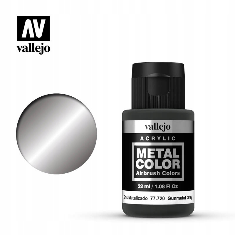 Металевий колір - це діапазон акрилового металевого металу для малювання аерографом. Їх склад містить пігменти останнього покоління з винятковим імунітетом та адгезією до пластмас та металу. Їх можна застосовувати безпосередньо на багато поверхонь, без необхідності праймінгу, хоча рекомендується використовувати чорний праймер Vallejo Gloss Black, щоб отримати кращі результати.