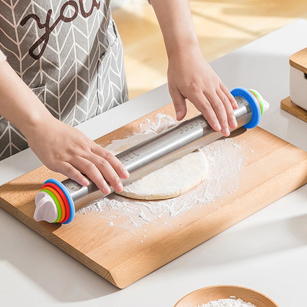 Рулик обладнано кільцями для регулювання товщини тіста. Розкачайте тісто або цукрову масу відповідно до ваших потреб.