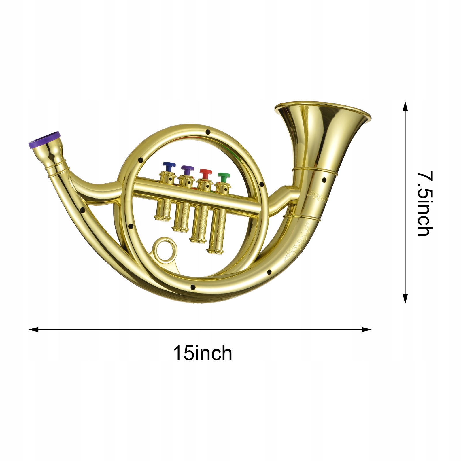 [Список інструментів] Ця дитяча валторна створена для імітації зовнішнього вигляду справжнього інструменту. Завдовжки 16,5 дюймів, це ідеальний розмір для маленьких ручок, щоб ними можна було триматися та гратися.