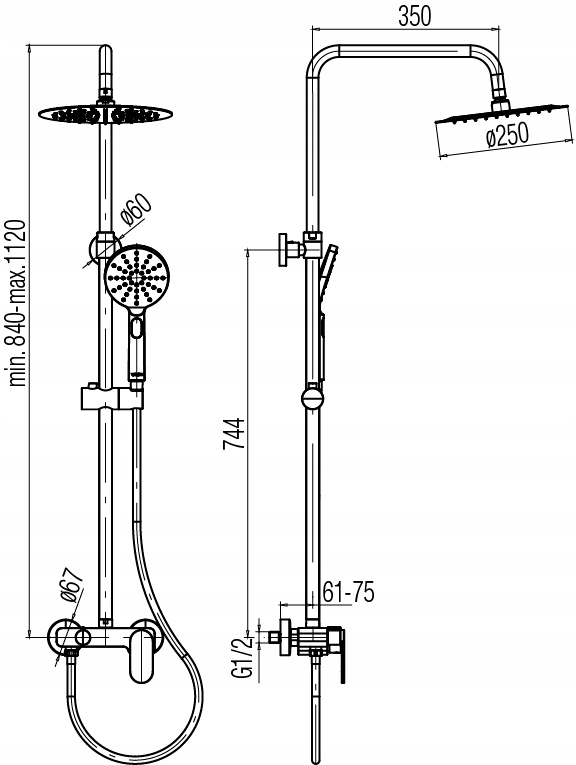 Набір оснащений трубкою з системою Magic Click і ультратонкий тропічний душ, висота якого легко регулюється.
