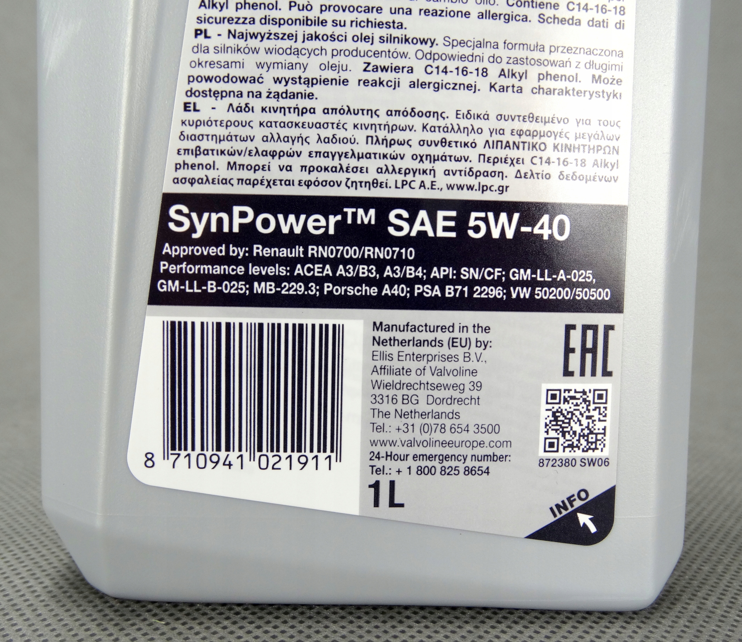 Оплачивая «VALVOLINE SYNPOWER 5W40 1л МОТОРНА МАСЛА», вы можете быть уверены, что данный товар из каталога «Синтетические» будет доставлен из Польши и проверен на целостность. В цене товара, указанной на сайте, учтена доставка из Польши. Внимание!!! Товары для Евросоюза, согласно законодательству стран Евросоюза, могут отличаться упаковкой или наполнением.