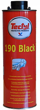 Tectyl 190 Black - звукоізоляційний засіб для захисту від ударів каменів. Призначений для використання на шасі та елементах кузова автомобіля (пороги та колісні арки). Гнучке покриття забезпечує тривалий захист чутливих деталей автомобіля.