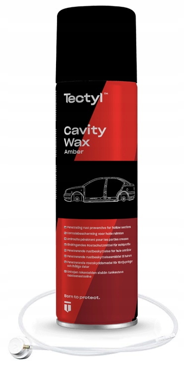 TECTYL CAVITY WAX AMBER є ідеальним засобом для захисту профілів закритих автомобільних дверей, порогів, рам і т. д. Характеризується хорошими об'ємними властивостями і проникнення води, що робить його ідеальним як засіб антикорозійний засіб для внутрішньої частини автомобільних дверей та інших порожнистих секцій автомобілів і рухомого обладнання. Залишає бурштиновий, напівпрозорий, м'який захисний шар.