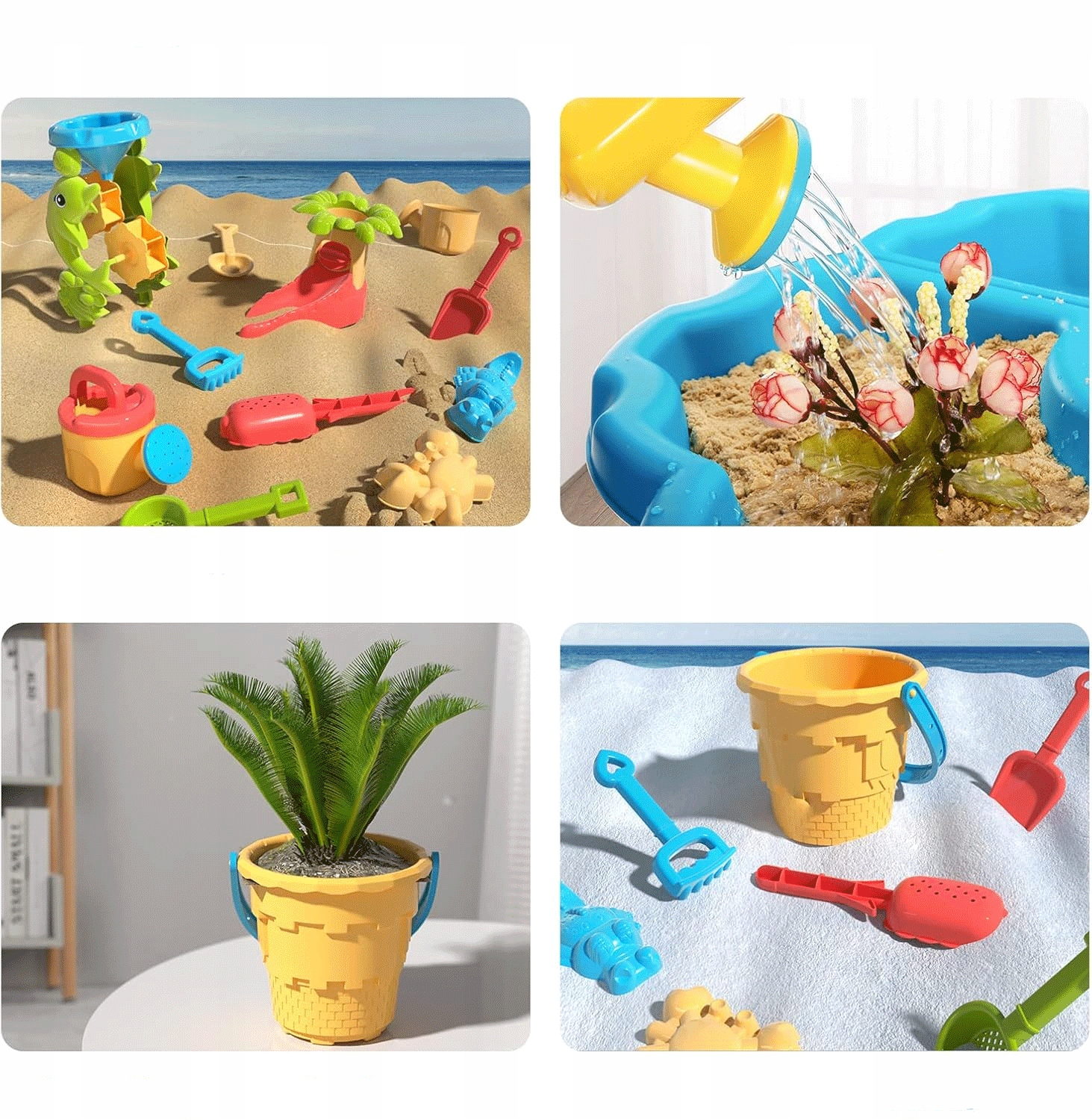 - Лопатки, відро, ситечко, полив, човен, пісочні форми та багато інших елементів на столі, вони не тільки чарівні декоративні елементи, але й спосіб заохотити дітей до взаємодії. Коли вода тече по них, маленькі можуть спостерігати, як вони рухаються під впливом потоку. 4