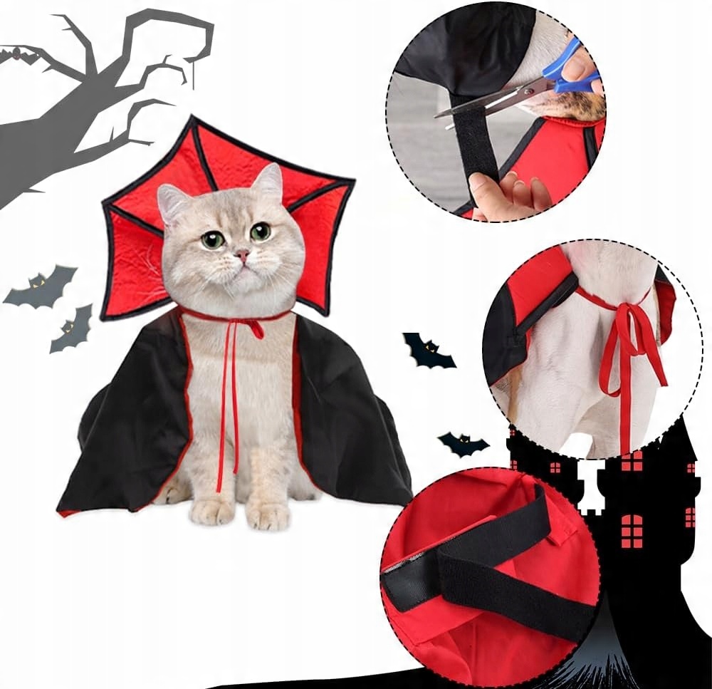 Унікальний дизайн: На відміну від простих костюмів вампірів, наш накидка вампірів має великий комір і жвавий дизайн, щоб перетворити свого домашнього улюбленця на загадковий вампір. Елегантний і тривожний зовнішній вигляд, безумовно, змусить вашу тварину стати зіркою на вечірці на Хеллоуїн.