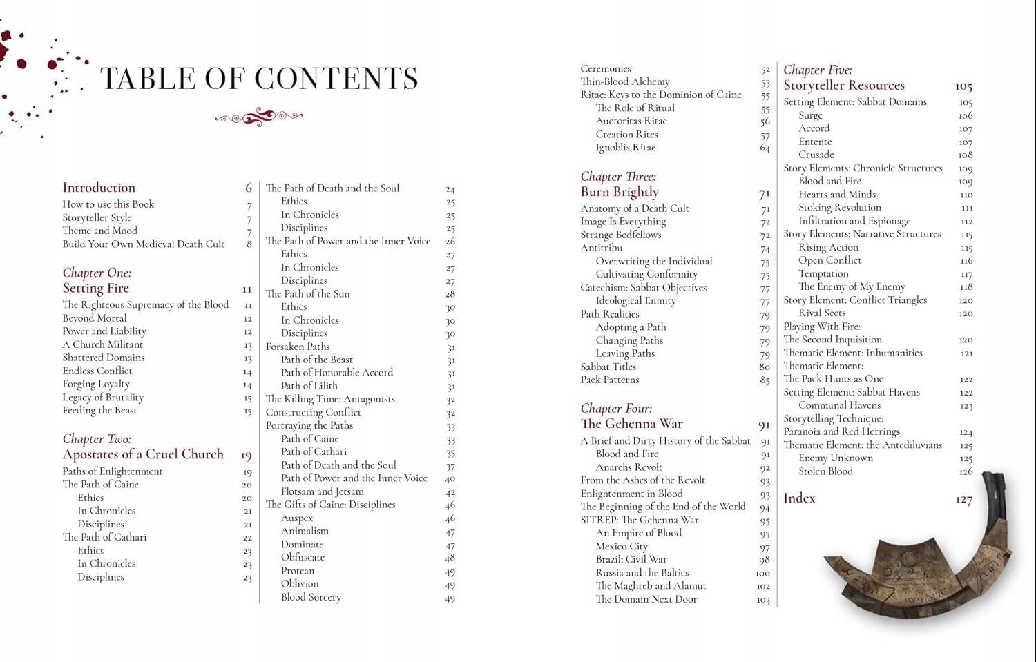 Посібник для фанатиків культу Шабашу, ця книга містить описи Шляхів Просвітлення, основи ідентичності Шабашу. Додаткова інформація про Війну Геєни та те, як Шабаш протистоїть грізним Допотопним. Цей предмет урізноманітнить ваші сеанси, а нові інструменти для розширення ваших хронік, зокрема сили Дисципліни, різноманітні антагоністи та жахливі Рити Чорної Руки — це те, що повинен знати кожен майстер гри, щоб покращити атмосферу вампірів.
