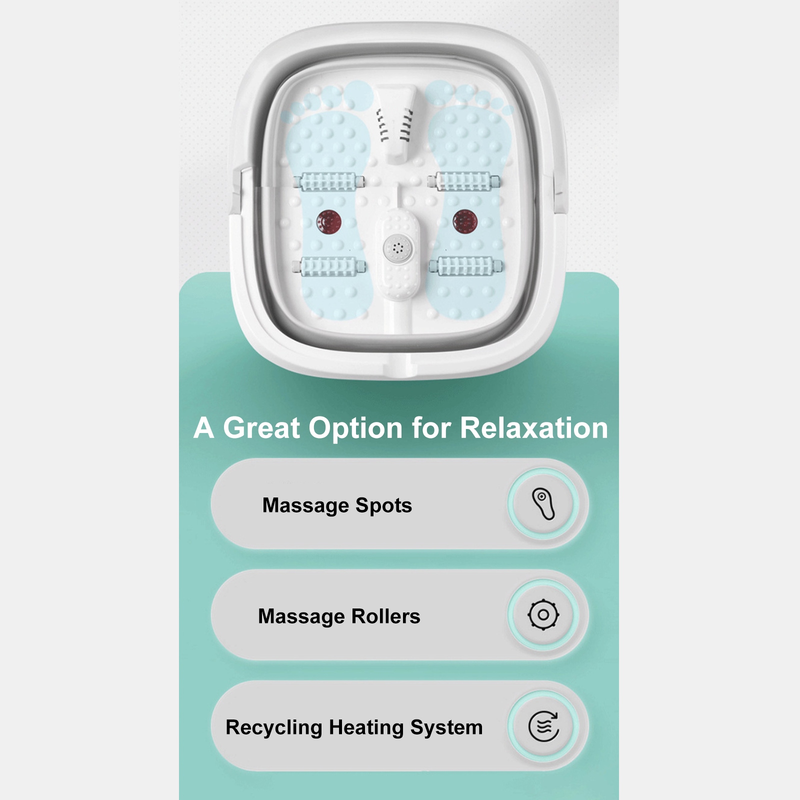 Функція: 1. Досить велика, щоб утримувати обидві ноги, на дні ніг можна додати достатньо гарячої води для занурення та автоматично масажуйте ноги.