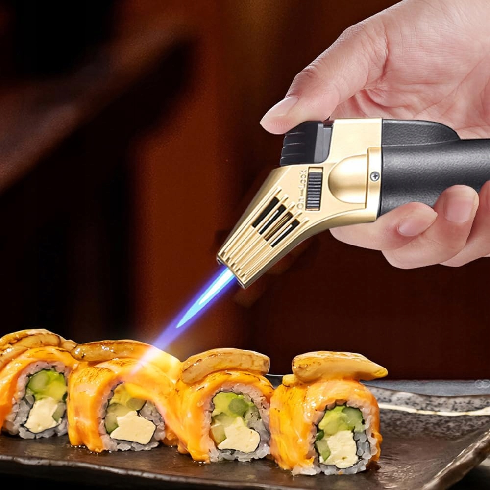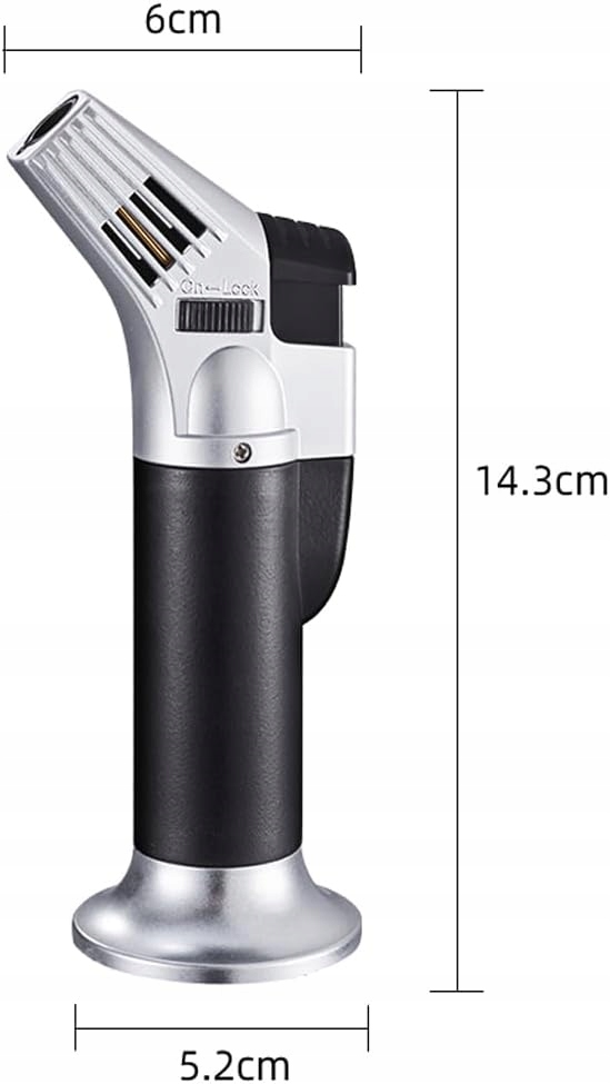 Ідеально підходить для карамлінгу цукру на бруле -кремі, запеченій шинці плитки, смажених стейків, гніздувальників, оброблених сиденів та хлібних хлібів. Це також корисно для освітлення каміна, свічок, для багатьох додатків для кемпінгу, дабів тощо. Деталі: Матеріал покриття: ABS + цинк стоп -поверхня обробка: металева фарба з розпилювальною фарбою Температура полум'я: макс. Прибл. 2370 ° F/1300 ° C Металева маса звукового сигналу: 118 г