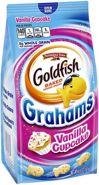 Цільнозернові крекери у формі рибок зі смаком ванільних капкейків з вершками та різнокольоровими цукерками.