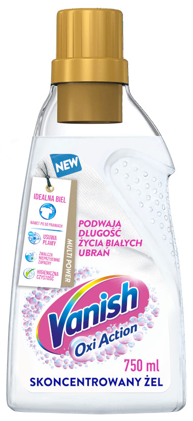 - Гель для виведення плям для білих тканин Vanish Oxi Action White 750 мл