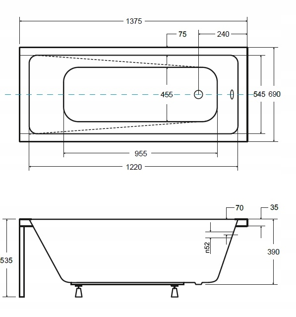 ВАННА ПРЯМОКУТНА 140х70 МОДЕРН