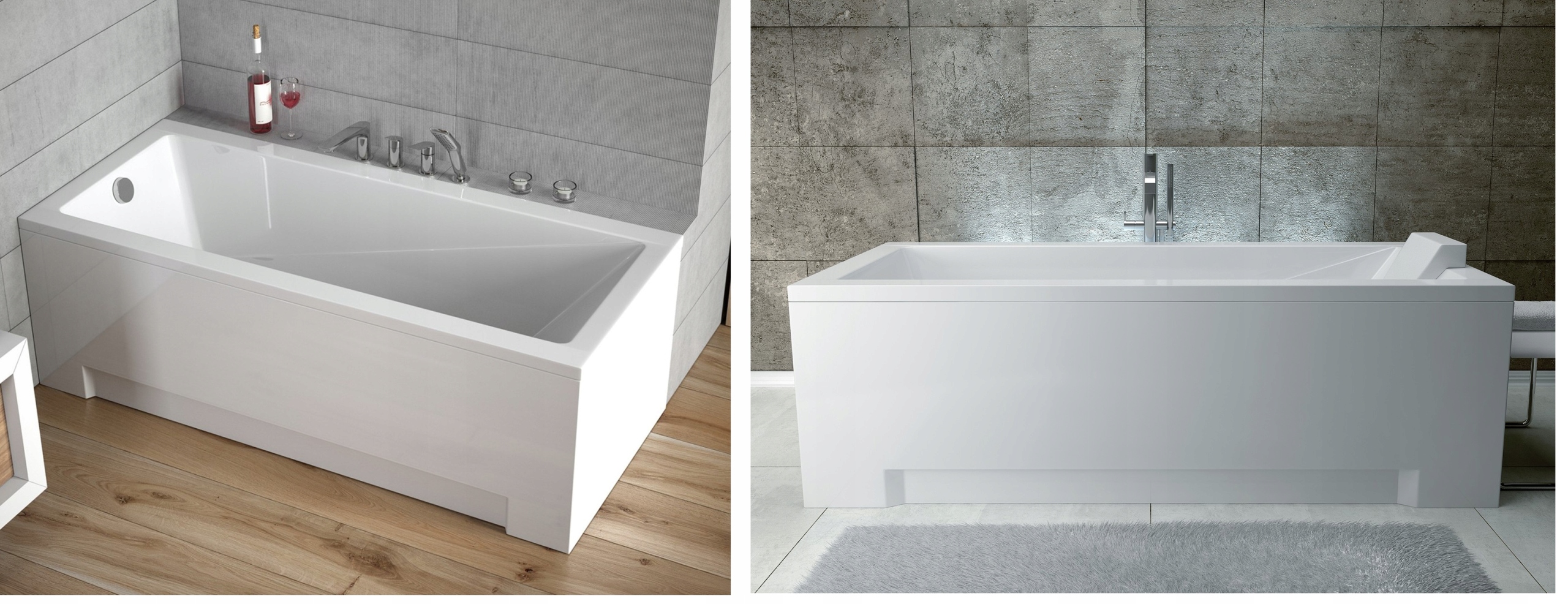 Корпус ванни: акрил, глянцевий білий, універсальний щодо позиціонування щодо ванни, кріпиться за допомогою затискачів - легкий доступ, наприклад, до зливу під ванною. Корпус складається з довгої передньої панелі 140 см і короткої панелі 70 см. У довгій панелі корпусу є виріз для ніжок. Висота корпусу 50 см.