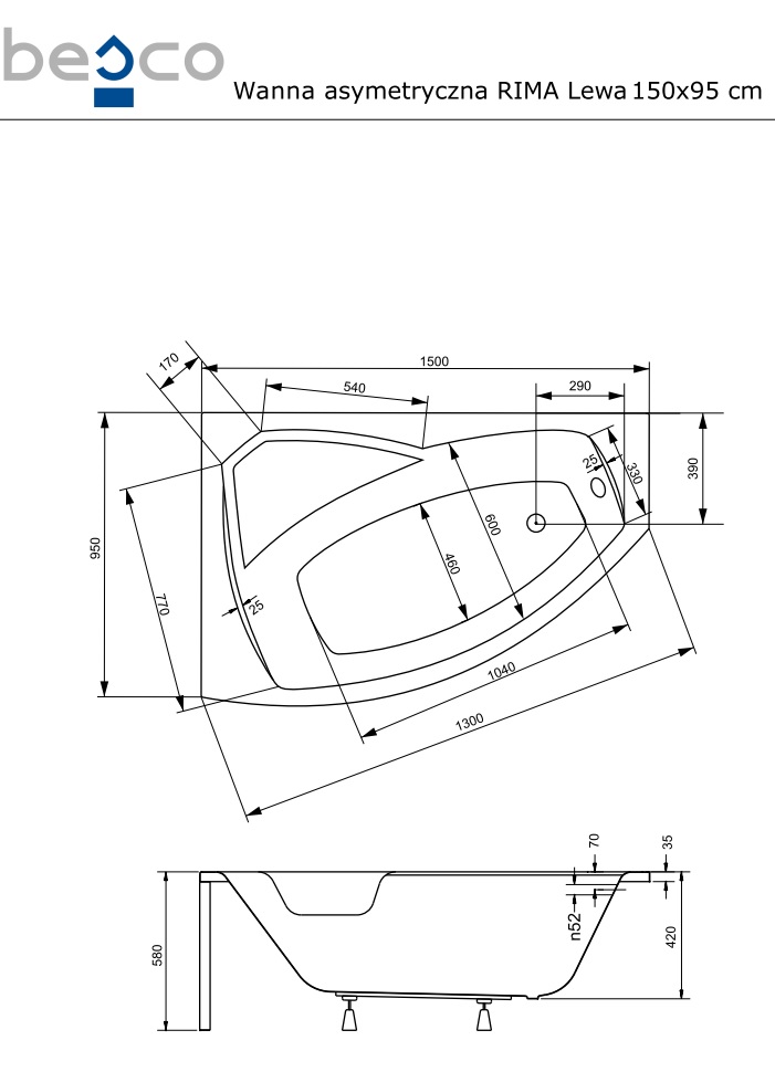 Кутова ванна Rima – це унікальне поєднання сучасна лінія простої форми, яка виправдає очікування найвимогливіших клієнтів. Сучасні форми Rima роблять ванну надзвичайно практичною та престижною. Ванна доступна в правому і лівому варіантах і в декількох розмірах, що дозволяє підігнати модель під розміри ванної кімнати. Високий клас комплектуючих і відмінне виконання підтверджено гарантією польського виробника PIRAMIDA BESCO.
