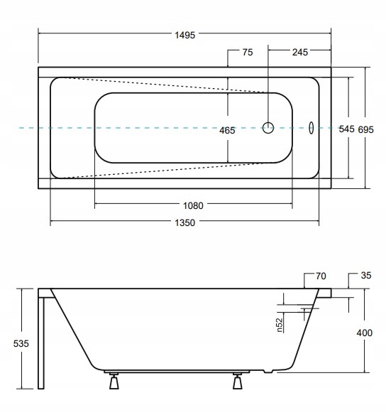 - Розміри: довжина/ширина/глибина : 150 см. / 70 см. / 40 см.