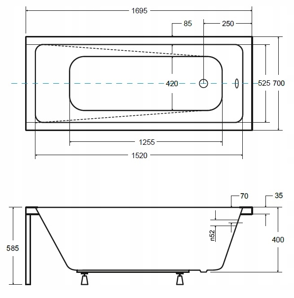 ВАННА ПРЯМОКУТНА 170х70 МОДЕРН