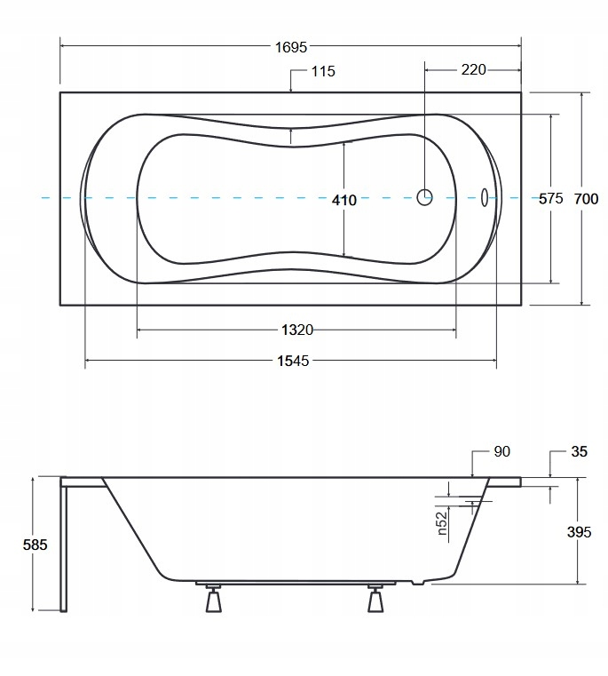 ✨ Ванна виготовлена з санітарного акрилу товщиною 5 мм з антибактеріальним покриттям.