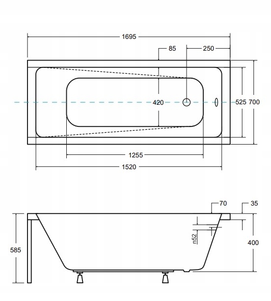 ➡️ Ванни з сантехнічного акрилу характеризуються насамперед ідеально гладкою поверхнею, що робить їх надзвичайно легкими у чистоті. Акрил – це матеріал з чудовими теплоізоляційними властивостями, завдяки яким поверхня ванни довго зберігає температуру води.