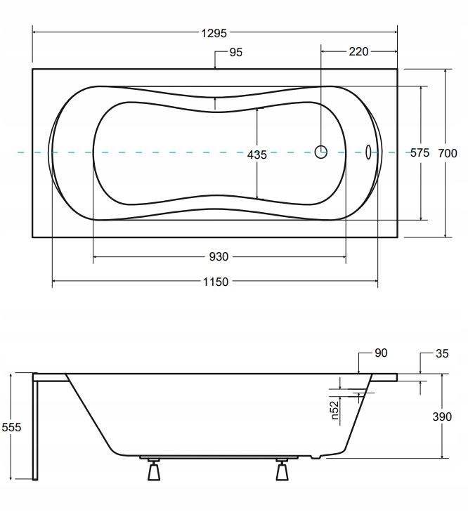 - Рамка, ніжки ванни та кріпильні елементи включені