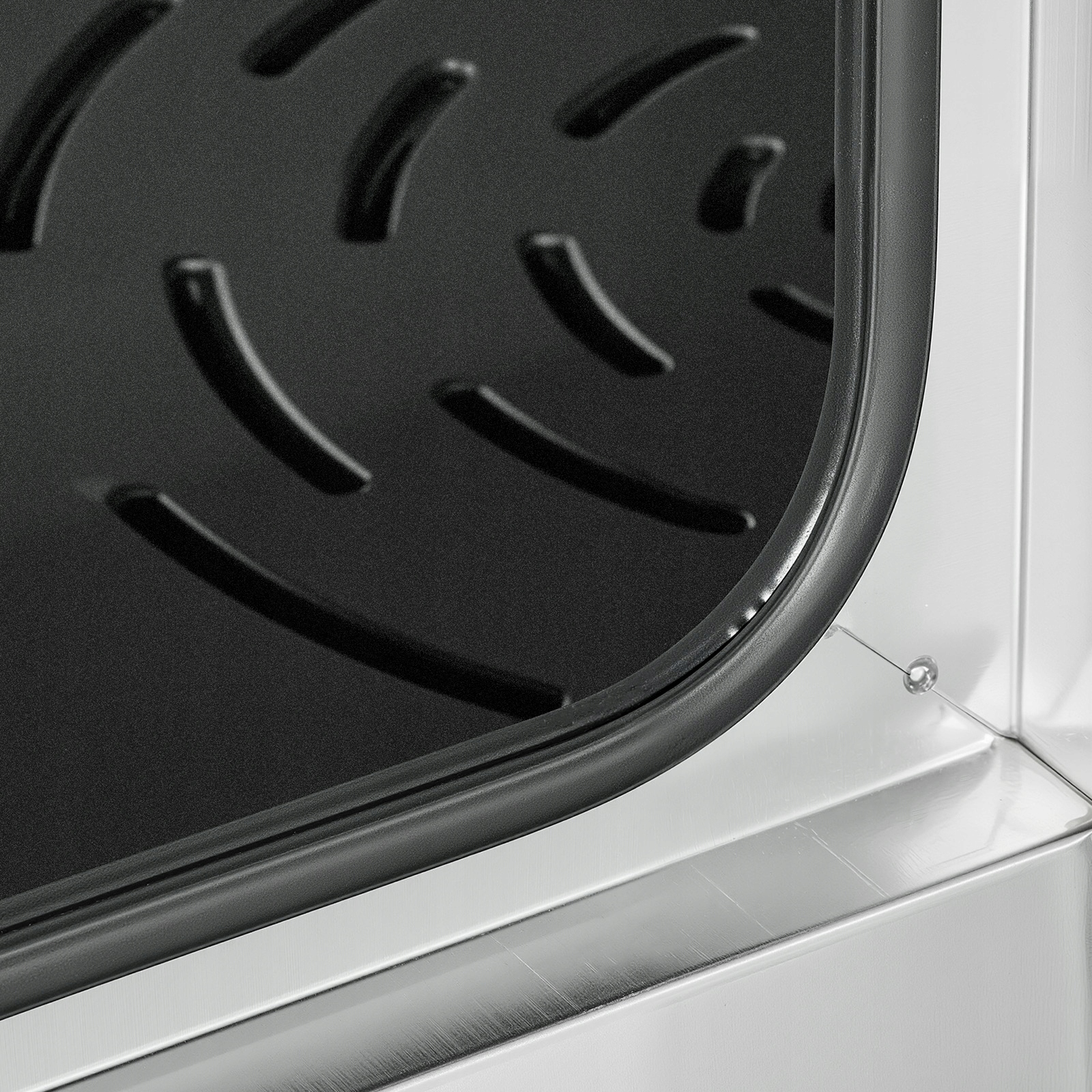 Завдяки безшовним цільним зварним швам і вбудованим ущільнювальним стрічкам ванна є водонепроникною. Виготовлений з нержавіючої сталі, він стійкий до корозії, міцний і з часом зберігає свій новий зовнішній вигляд. Ванна має гладкі краї, що забезпечує безпеку тварин і користувачів під час купання.