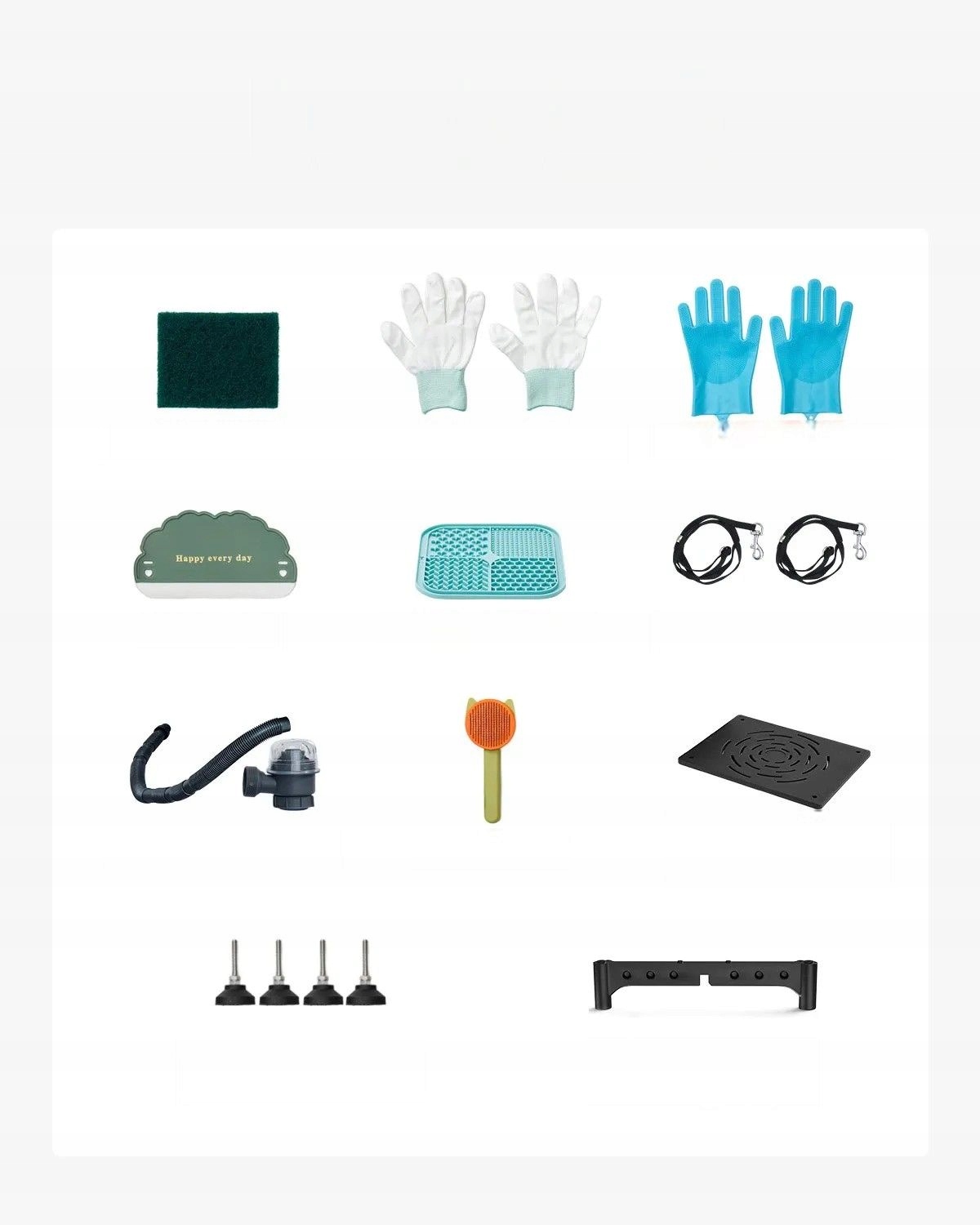 - ✅ Багатофункціональний набір аксесуарів: У набір входить душ, змішувач, а також накладка для облизування, щітка та рукавички - все, що потрібно для догляду.