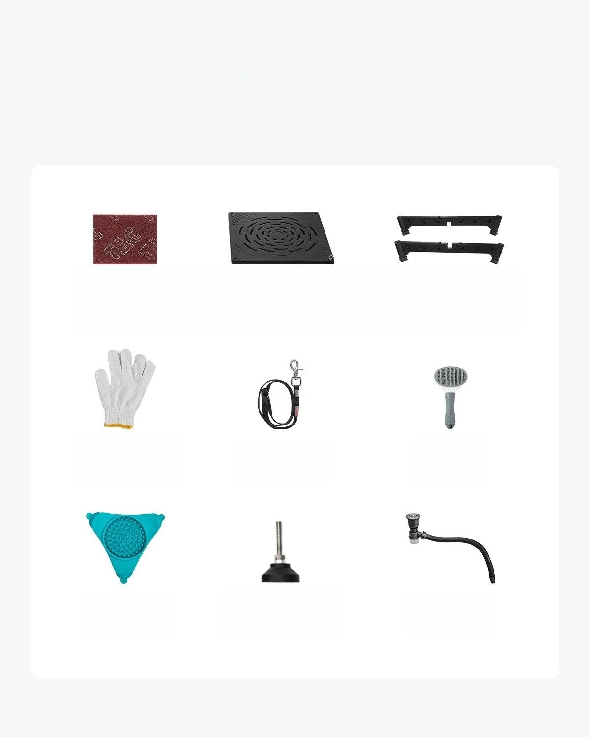 Безліч аксесуарів, купівля «все-в-одному» для купання та ігор, зокрема: губка для чищення, бавовняні рукавички, мотузка для підйому та таця для облизування.