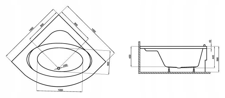 Пропозиція поширюється на ванну без обшивки, ванну з обшивкою можна знайти в інших наших пропозиціях.