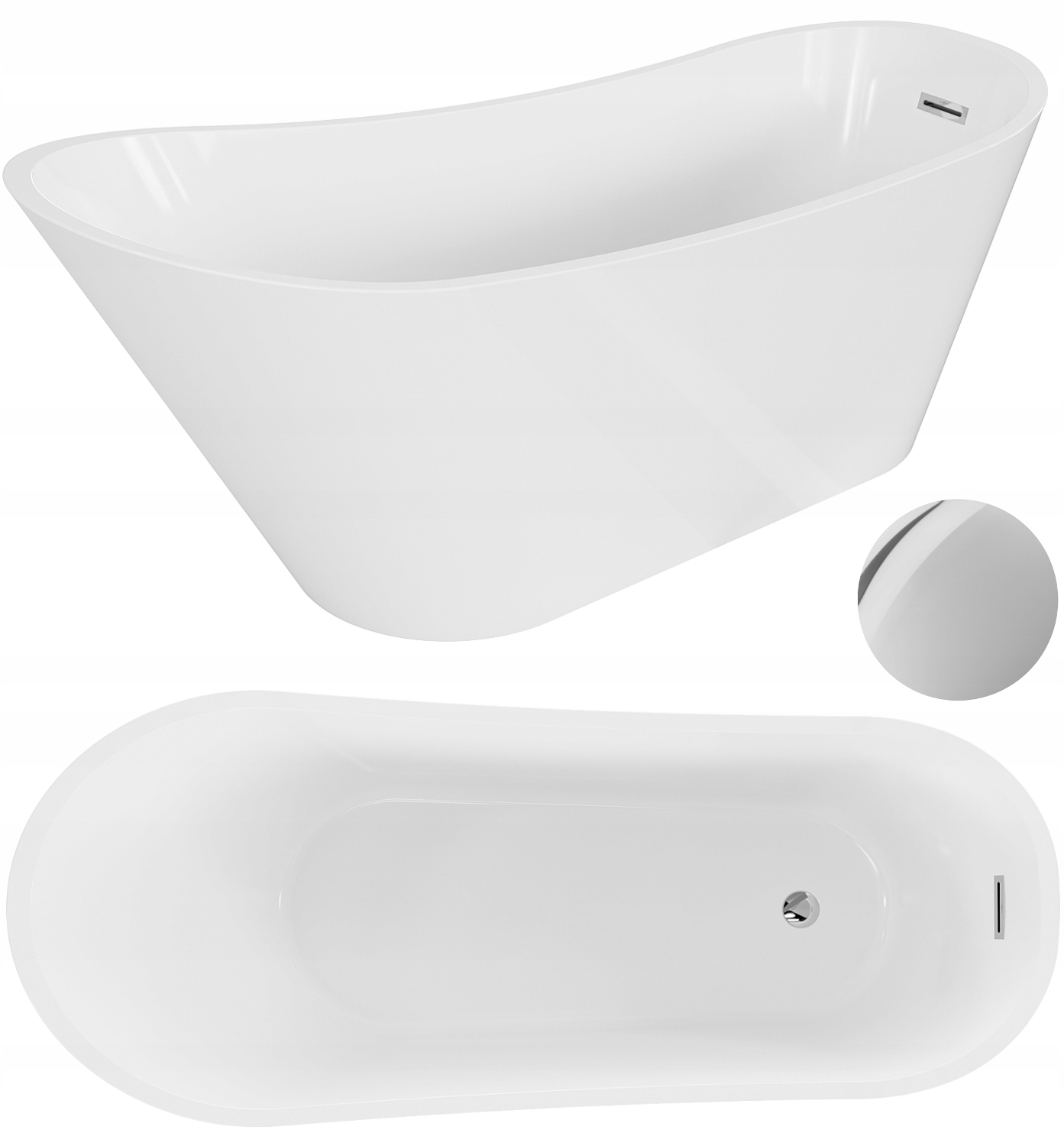 Окремостояча ванна Mexen Alta 170 x 75 см, біла, хромований перелив