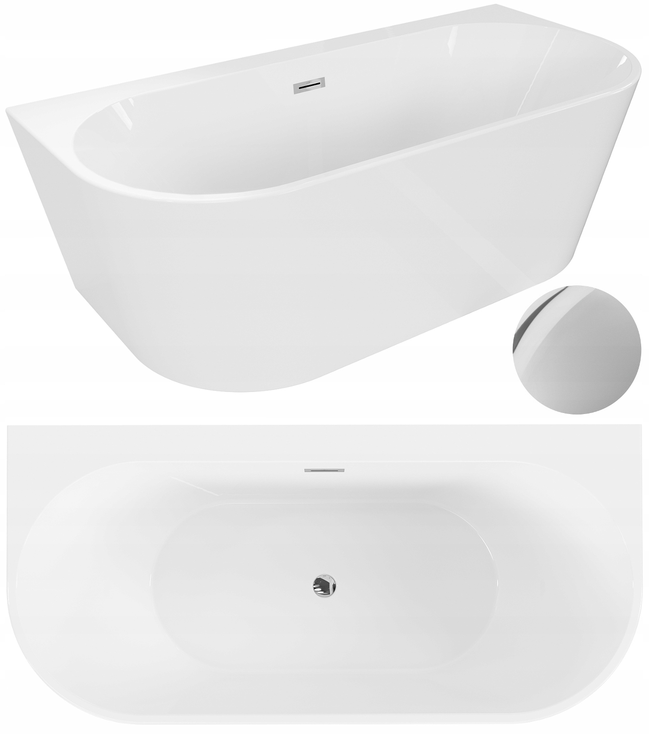 ВАННА НАСТІННА АВТОМОБІЛЬНА MEXEN OVAL+ БІЛА 170х80 ХРОМ