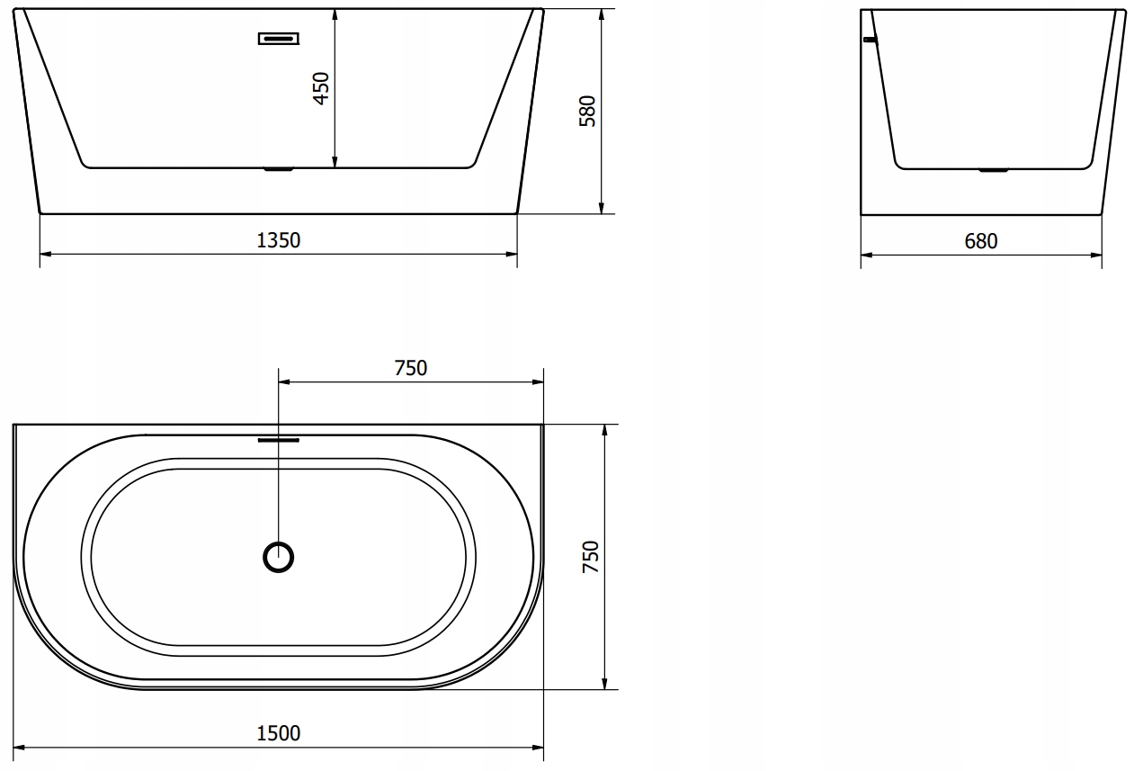 ВАННА НАСТІННА ОВАЛЬНА MEXEN БІЛА 150x75 ХРОМ