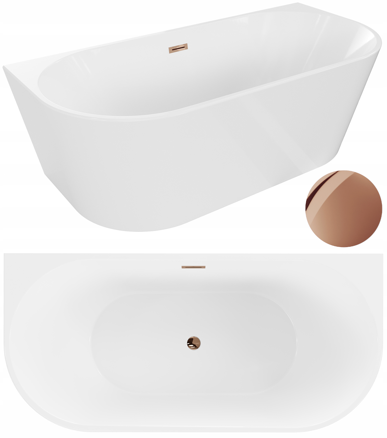 Настінна окремо стояча ванна Mexen Oval 180 x 80 см, біла, рожеве золото, перелив