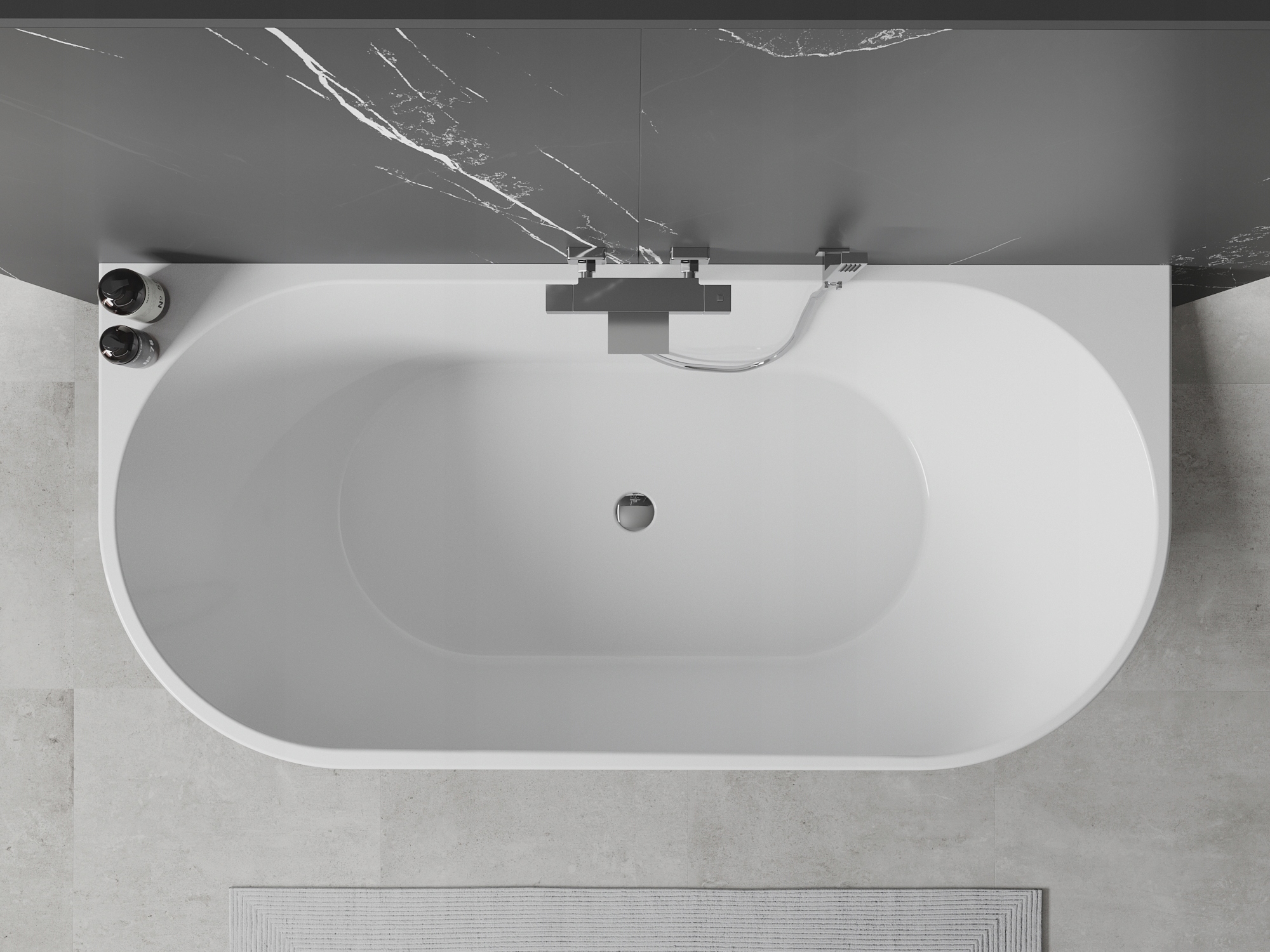 Окрема навісна ванна Mexen Oval 170 x 80 см, білий/чорний, хромований перелив