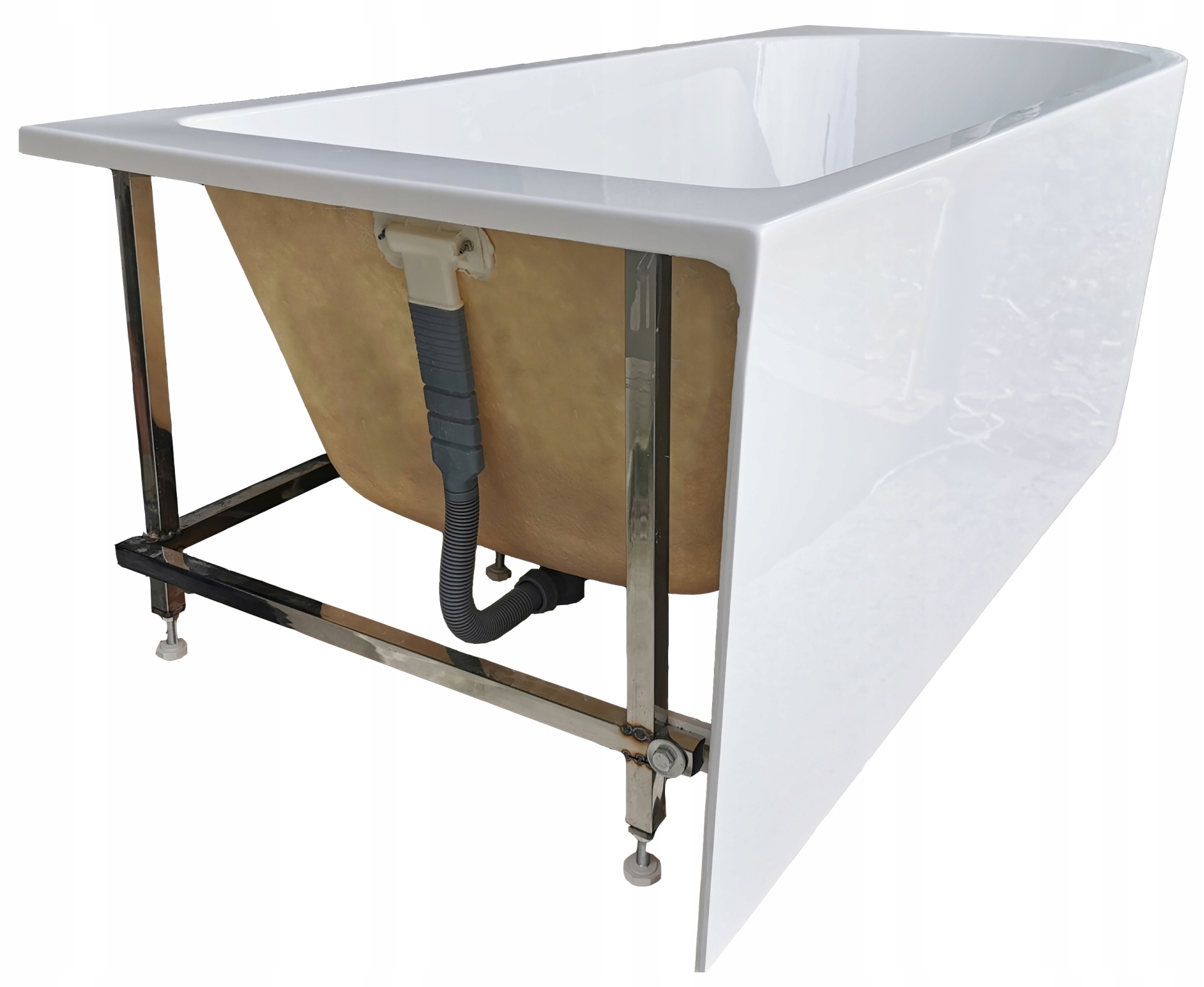 Висока якість використовуваних матеріалів гарантує безпроблемне використання ванни протягом багатьох років. Ванна виготовлена з високоякісного санітарного акрилу, стійкого до подряпин і зміни кольору. У комплект також входить злив з хромованою латунною пробкою клік-клак і сифон. Ванна встановлена на міцному металевому каркасі, з системою регульованих ніжок.