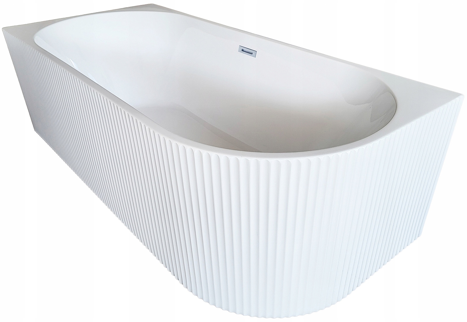 Окремо стояча кутова ванна IMOLA 160x75x58 см є ідеальним вибором для людей, які шукають продукт, який не тільки забезпечить розслаблюючі ванни, але й збагатить декор ванної кімнати. Ця модель окремо стоячої ванни завойовує прихильників завдяки простій, бездоганній лінійці виробів. Клієнти, які обрали цю кутову ванну для своєї ванної кімнати, цінують її за оригінальний дизайн і чудовий профіль - тут привертає увагу тонкий край ванни для ванної кімнати, який підкреслює її модерністський вигляд, і корпус з унікальною рифленою формою, яка перетворить вашу ванну кімнату на оазис відпочинку та розкоші. Купання в такій кутовій ванні буде суцільним задоволенням! Ця настінна окремо стояча кутова ванна зі смугами стане чудовим елементом обладнання як для класичних інтер’єрів, оформлених під ретро-салони, так і для мінімалістичних, ультрасучасних ванних кімнат, взятих прямо з найпрестижніших журналів про інтер’єр.