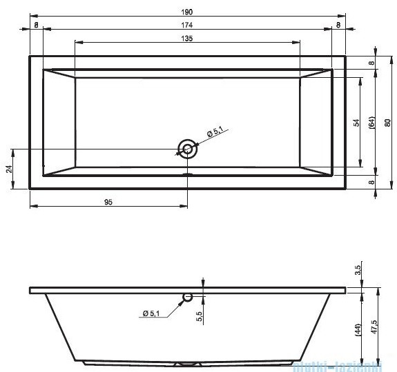 Поверхня ванни гладка й непориста, тому вона залишається гігієнічною та недорогою навіть після багатьох років використання. Щоб зберегти її чистою, просто протріть її мокрою ганчіркою після купання.