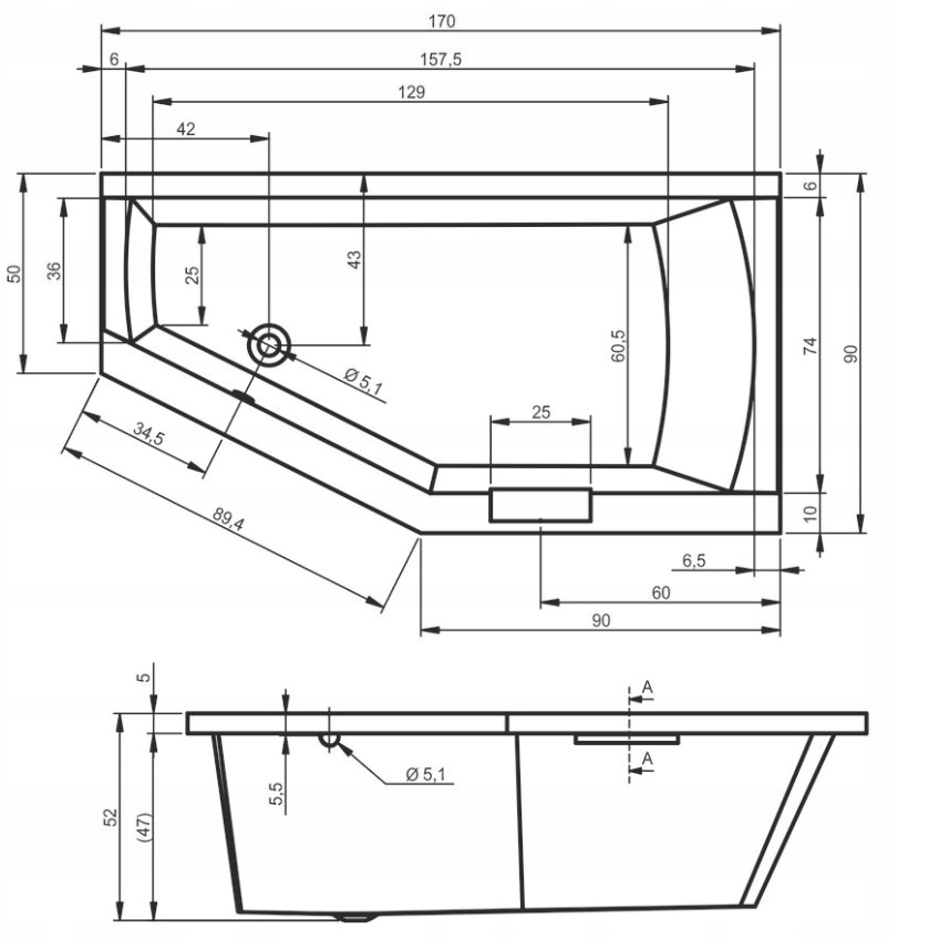ВАННА RIHO GETA 170X90 ЛІВА BA89