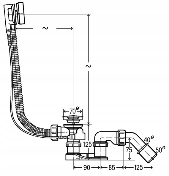 - Одномісна ванна зі зливом, розташованим з боку ніг