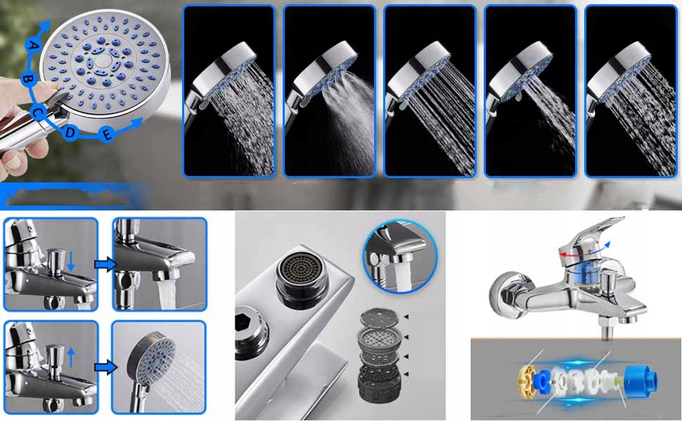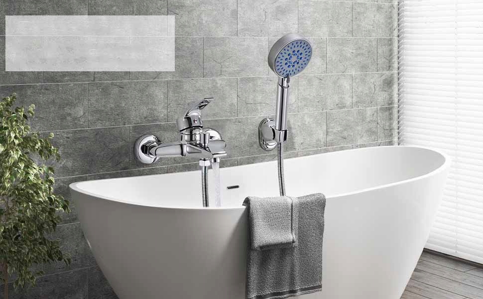 ✔ ванна з ручним душем: Акумулятор ванни виготовлений з твердої нержавіючої сталі SUS304, яка характеризується хорошою стійкістю до корозії, що забезпечує якість та довшу міцність. Ванна: танк і душ для ванни; Обидві функції можна вільно керувати. Акумулятор ванни оснащений ручним душем і душем з 5 функцій.