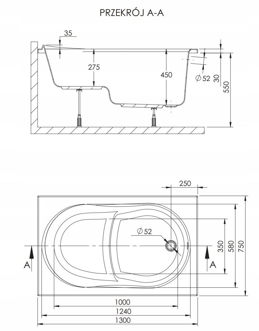 - ванна встановлена на металевій рамі з регульованими ніжками