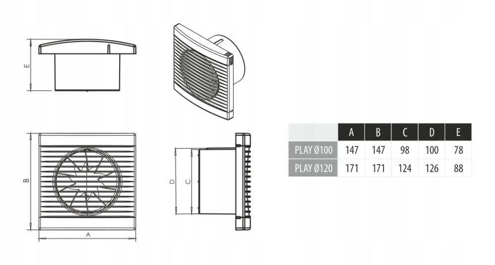 Це сучасний вентилятор екстракту Dosher у стандартній версії для домашнього використання. Він використовується для видалення вживаного повітря, вологи та забруднення в комунальних приміщеннях, тобто кухні, ванні кімнати, офіси тощо. Це збільшує комфорт використання приміщень, запобігає розвитку бактерій та грибів - підтримує вентиляцію гравітації. Вентилятор, що базується на високоякісних кулькових підшипниках, можна встановити як на стіні, так і на стелі. 4 Акустичний тиск [db/a [3m]]: 26