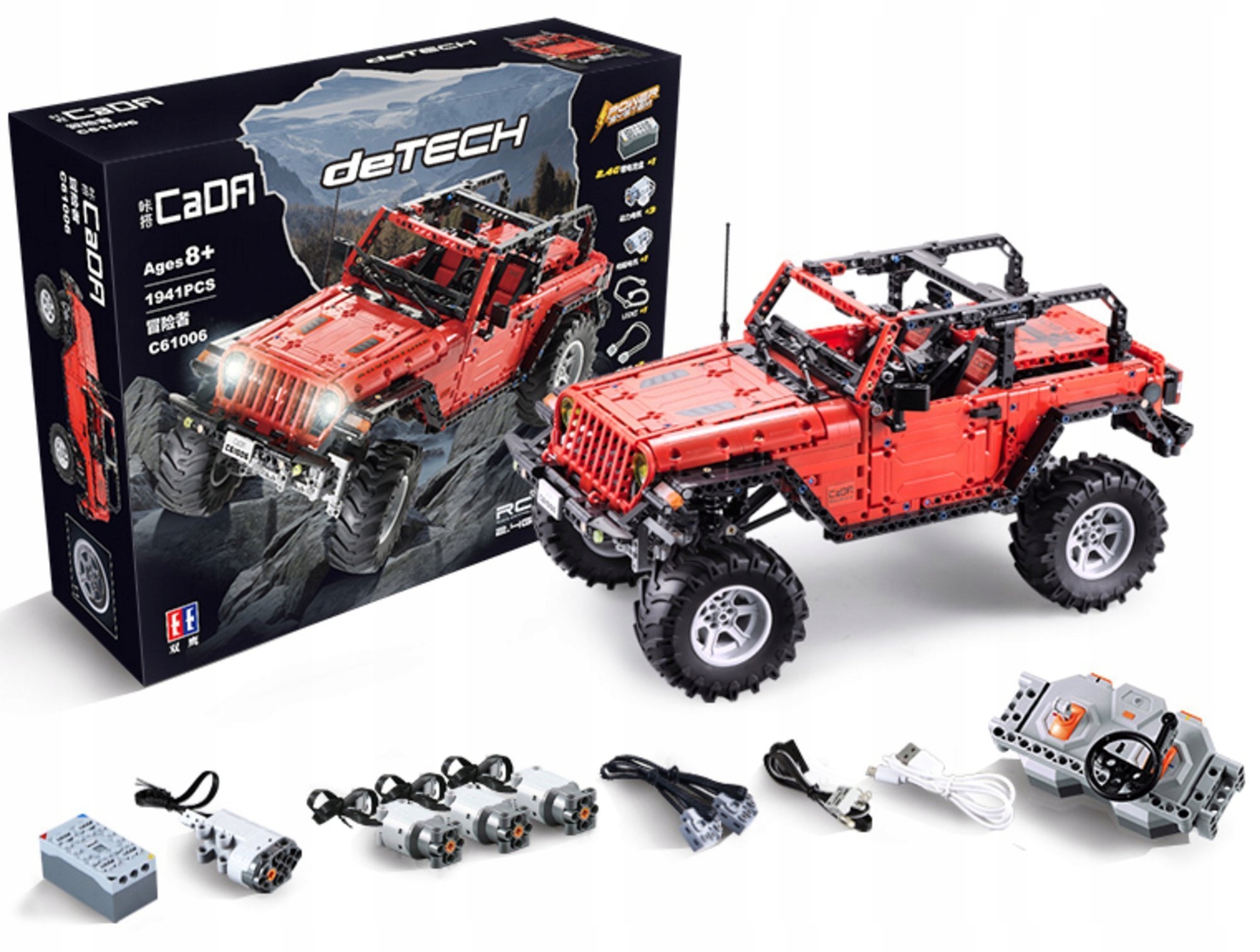 Набір складається з 1941 елементаі дозволяє самостійно зібрати позашляховик. Автомобіль створено з особливою увагою до деталей, які забезпечать неймовірне задоволення. Він має червоний корпус із чорними елементами; має дверцята, що відкриваються, ударостійкий і призначений для бездоріжжя (долає 50-градусний пандус). Інтер'єр відтворено в деталях. Складна модель виконана в масштабі 1:9,5. Виглядає як справжній автомобіль.