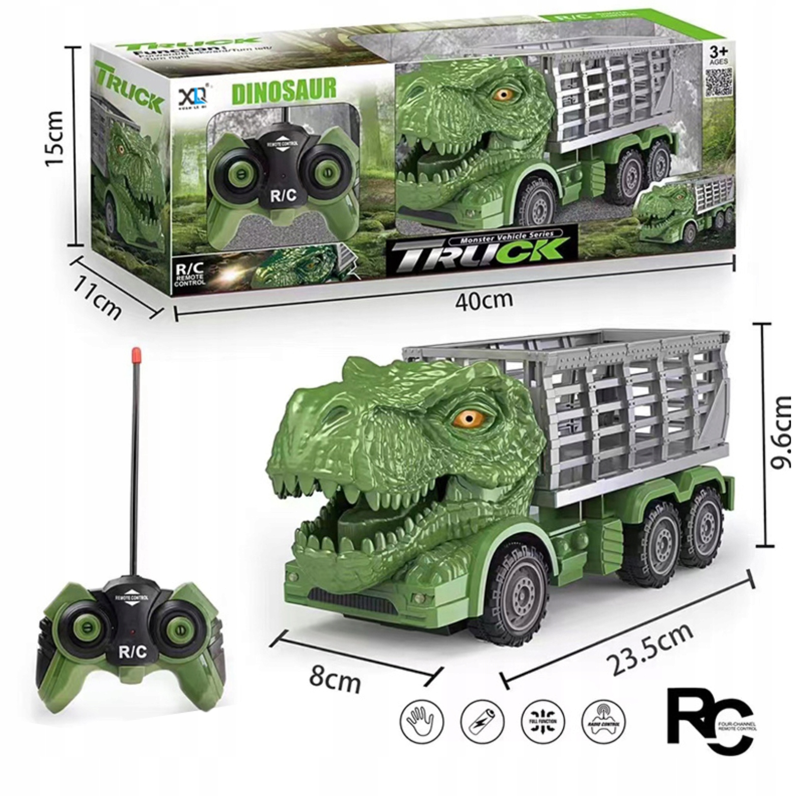 ВАНТАЖІВКА ДИНОЗАВРА З ДИСТАНЦІЙНИМ КЕРУВАННЯМ З КАПОТОМ, ЩО ВІДКРИВАЄТЬСЯ, СВІТЛОДІОДНИЙ ПУЛЬТ ДИСТАНЦІЙНОГО ДУ