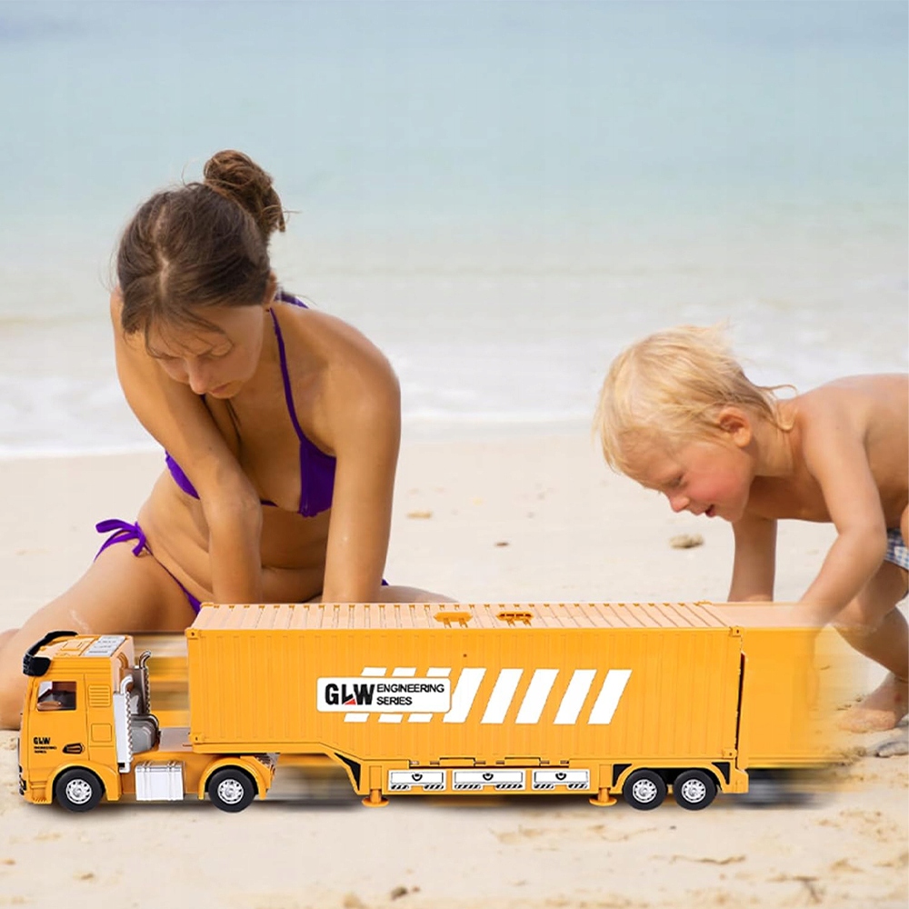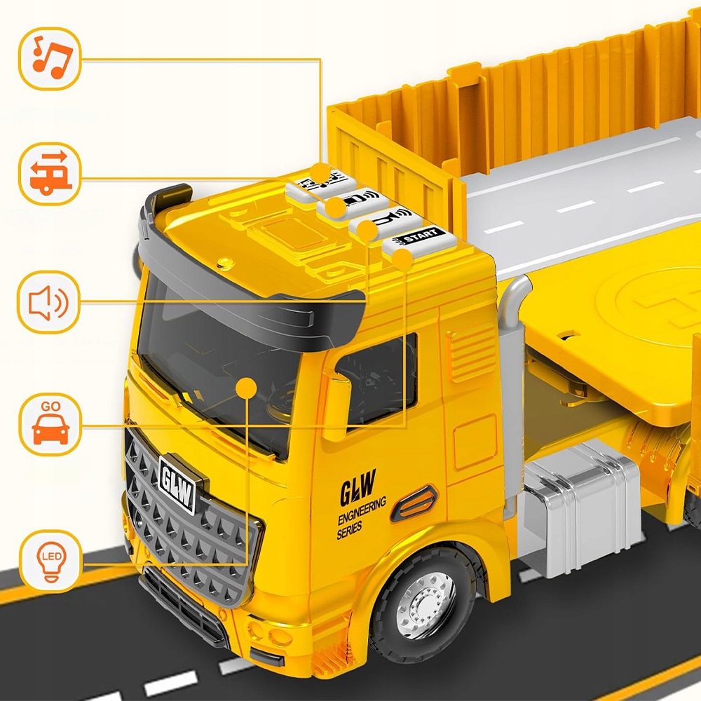 Реалістичні ефекти: Великий будівельний причіп має 4 різні звукові та легкі ефекти - імітуйте звуки двигуна, сигнали тривоги або робочі світильники, що полегшує дітям зрозуміти функцію будівельних транспортних засобів. Це надихає створити власні сценарії, розвиває творчість та викладає роль окремих пристроїв на будівельному майданчику.