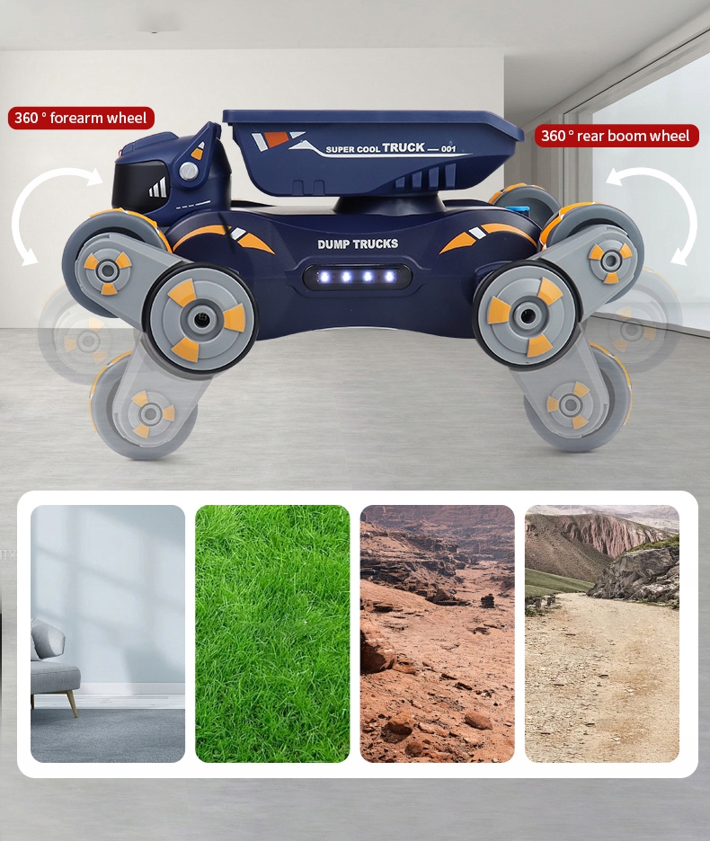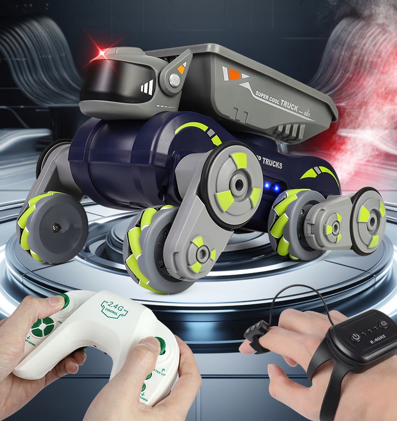 - Опис функції: повний привід, дрифт вперед, назад, ліворуч і праворуч , кольорові вогні, музика, спрей, водіння ліворуч і праворуч, лазіння на передні та задні важелі, управління жестами, дриль, перемикання режимів освітлення, завантаження предметів