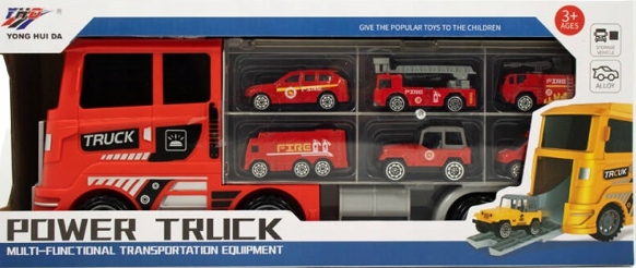 ВАНТАЖІВКА З НАБОРОМ 6 МАЛЕНЬКИХ ПОЖЕЖНИХ МАШИН