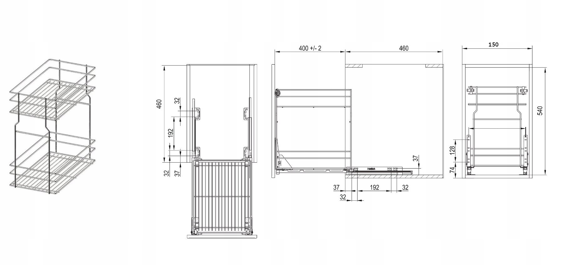 Вантажний кошик 15см 2-рівневий повного висування з плавним закриванням, хромований ефект від відомого польського виробника Rejs.