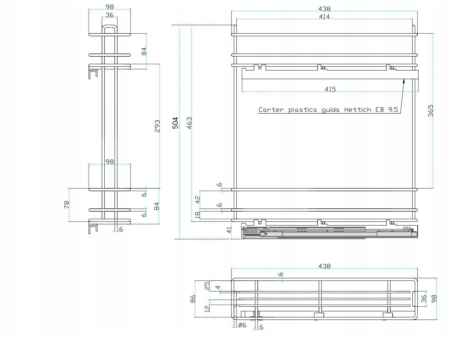 Вантажний кошик дворівневий 150мм тиха Італійська
